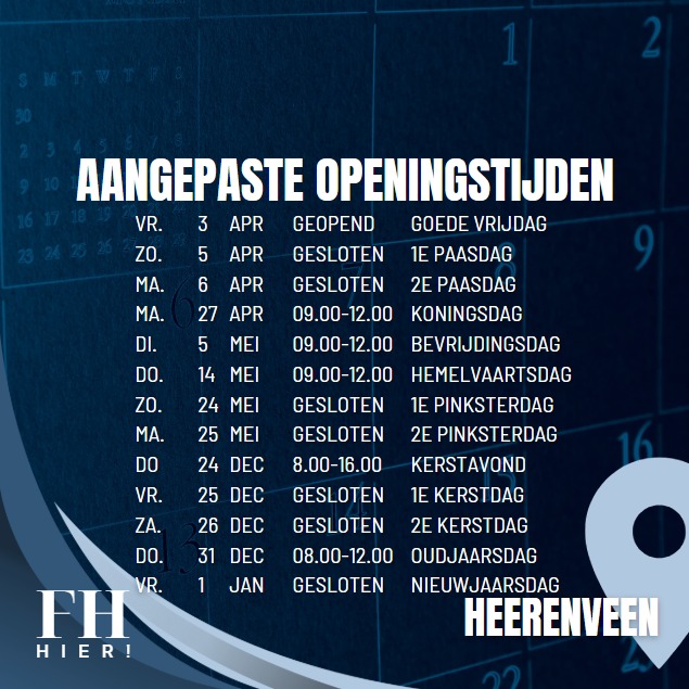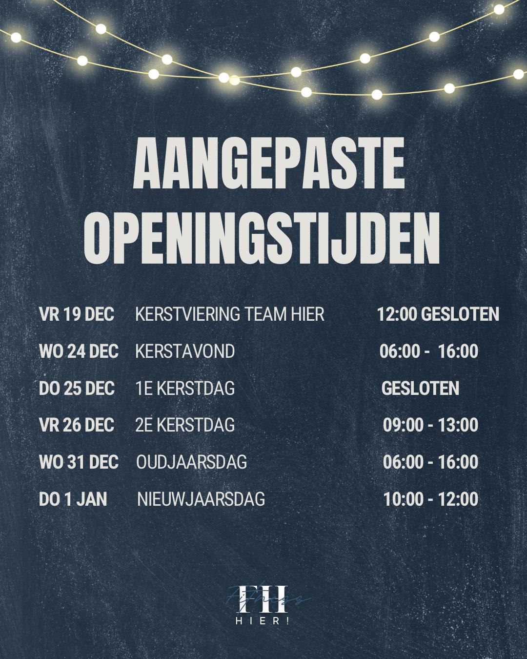 | Vrijdag | 08.00 - 17.00 uur | 08.00 - 14.00 uur |
